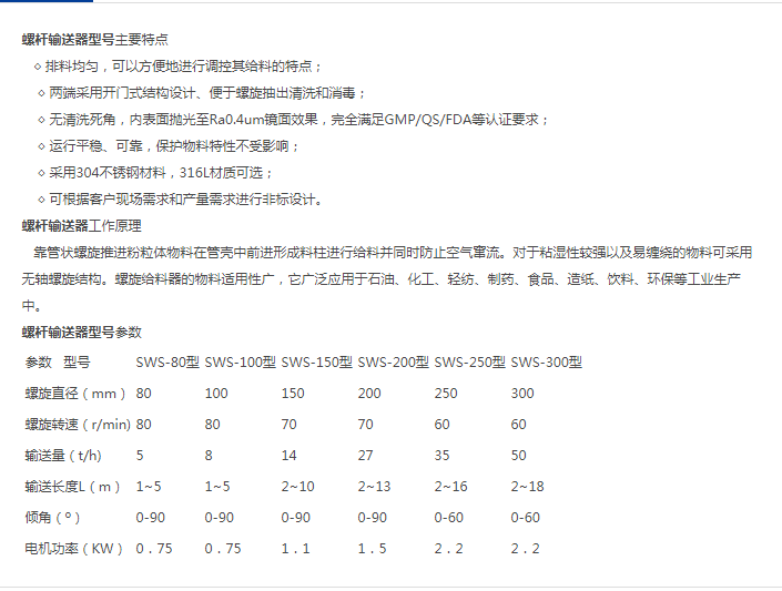 2、螺旋上料是利用螺旋强制性的运动,所以螺旋上料机不受物料的比重和物料的流动性所影响。