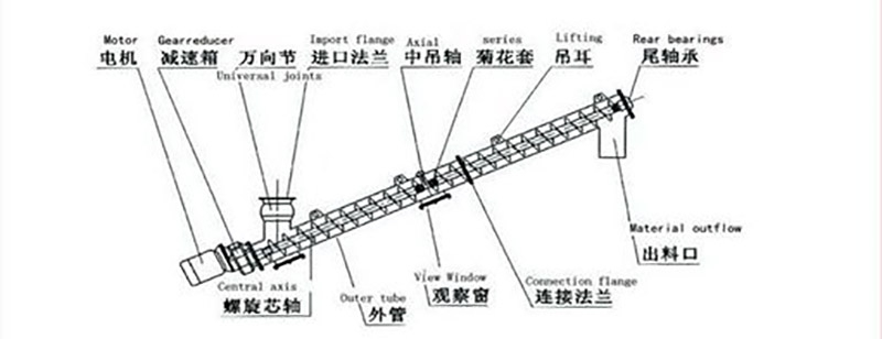 2、螺旋主轴:45号钢、可做(不锈钢)。
